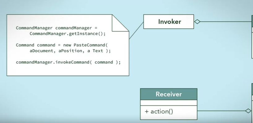 - Invoker makes the command object do what it's supposed to do and get the specific receiver object to complete the task